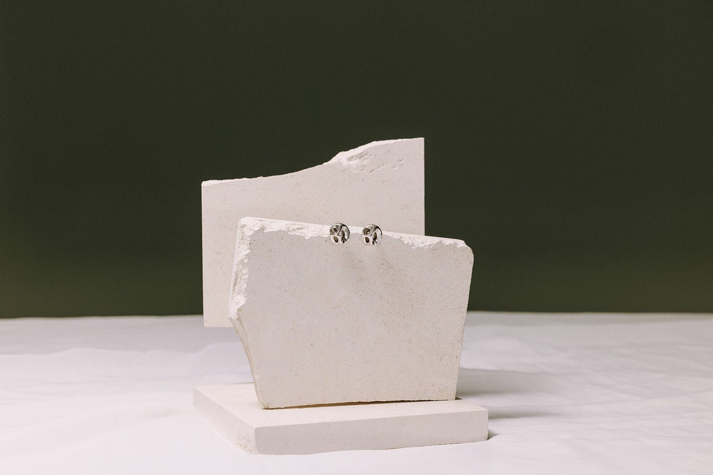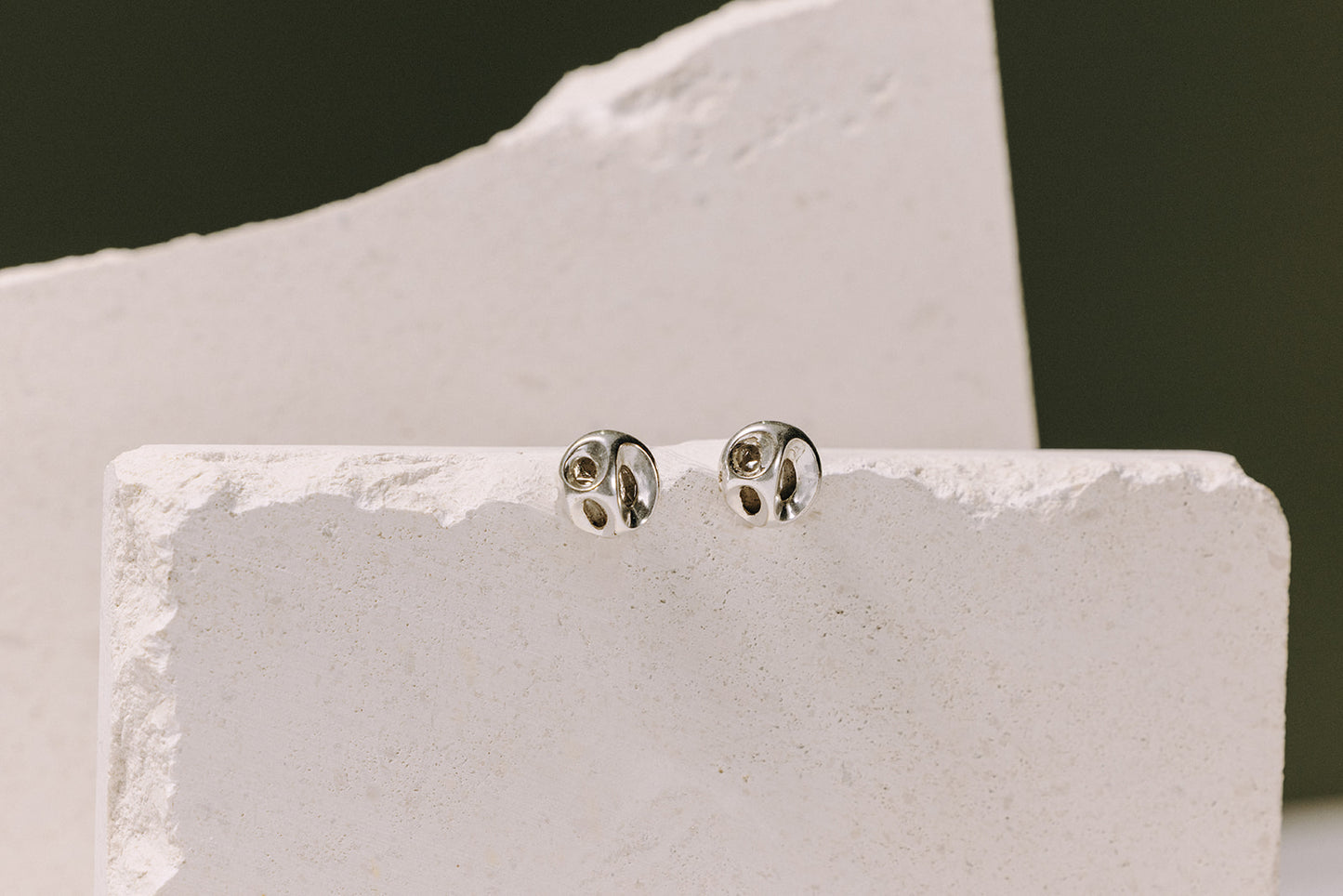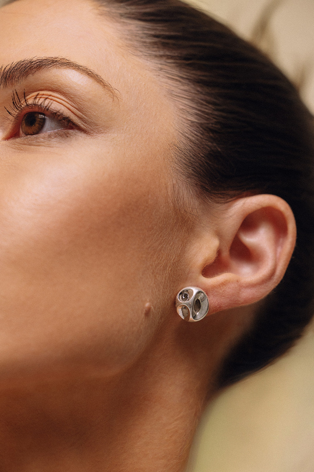 Earrings of sterling silver with a dynamic design based on holes that form an interesting morphology in the piece.