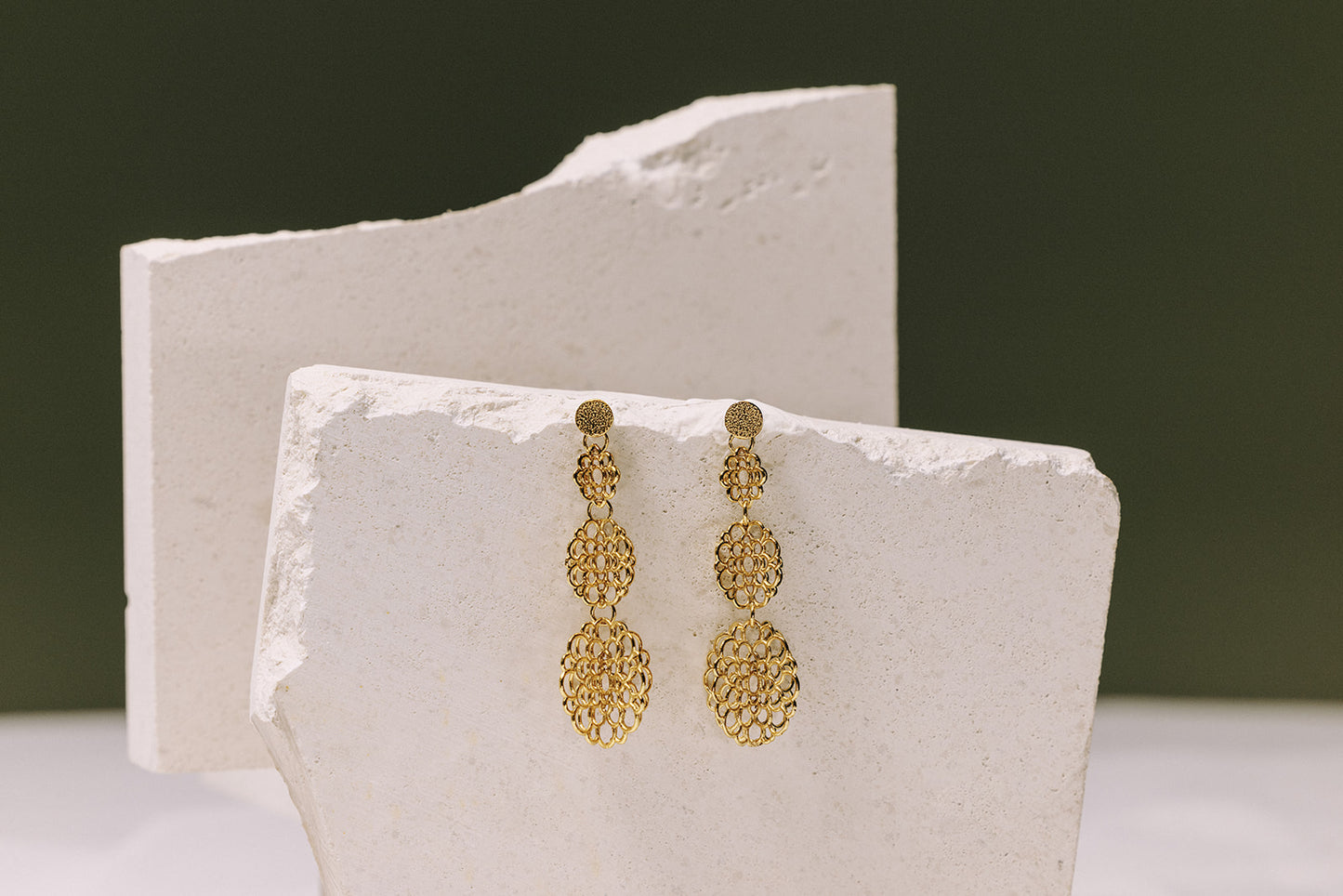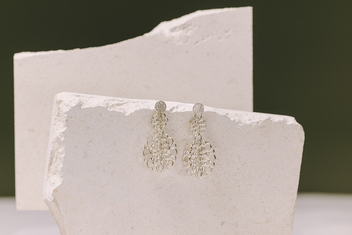 Earrings inspired by the Hydrangea flower. These earrings are articulated and have different volumes depending on the size.