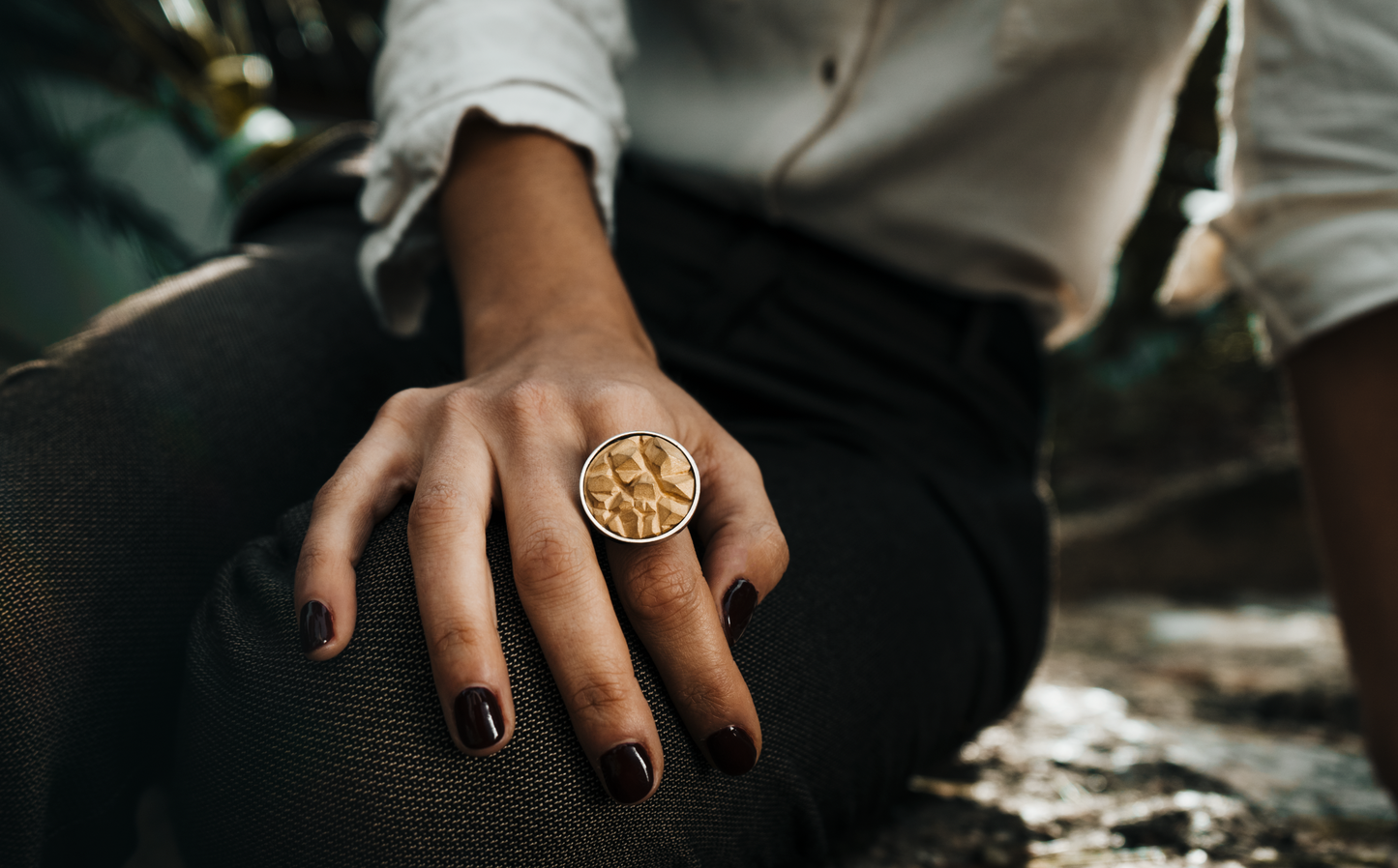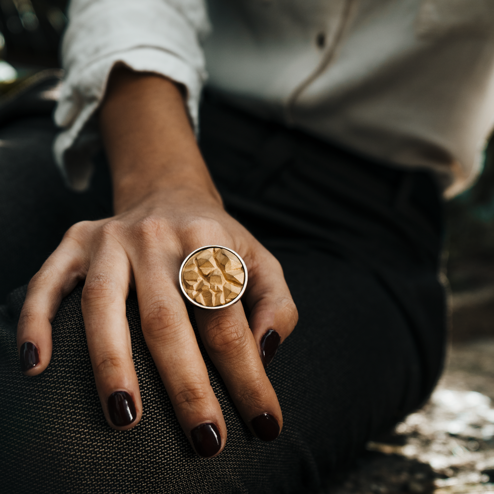It captures the stony and rocky sensations that are the inspiration for the collection.