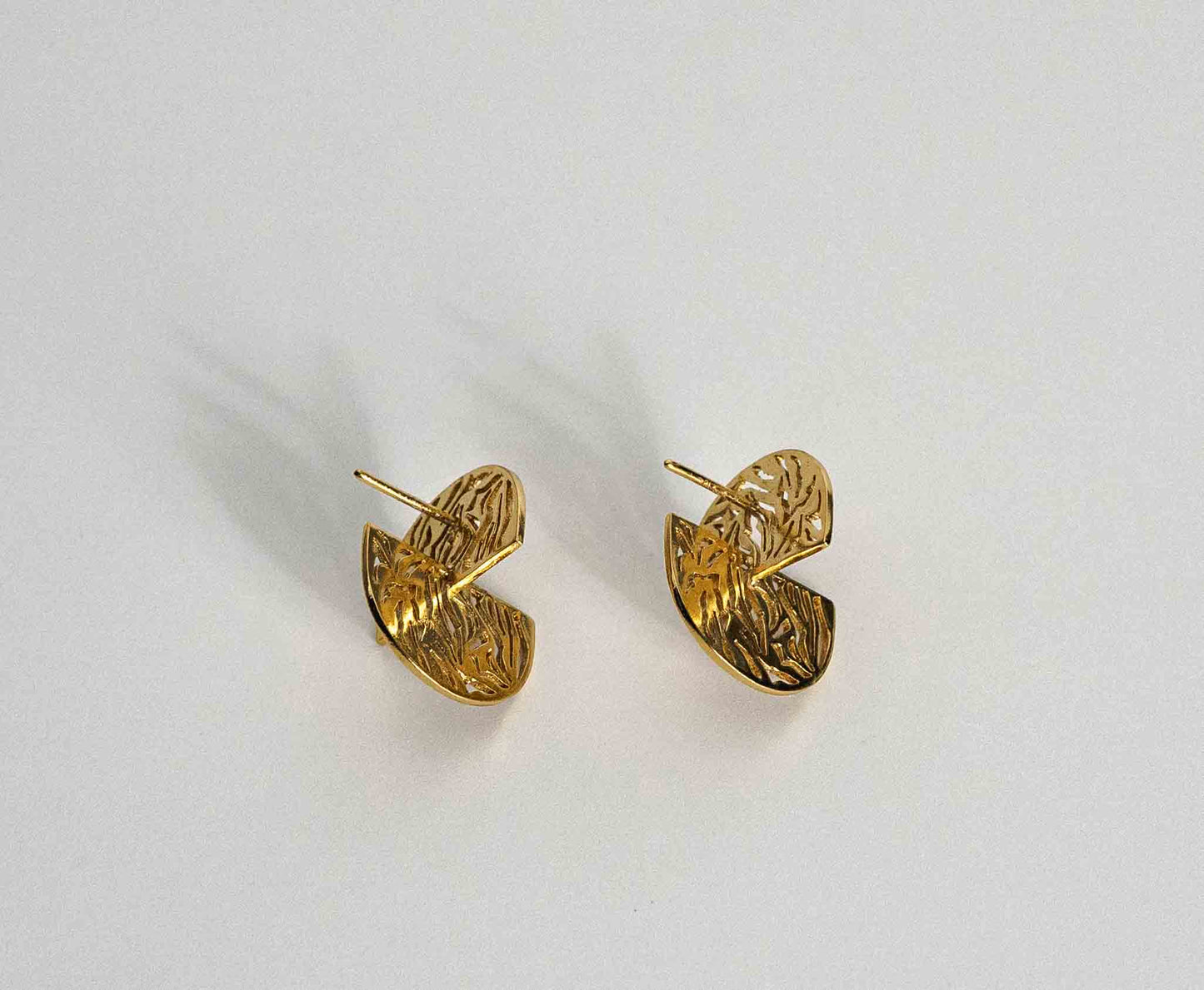 Pendientes de semicírculo con un diseño geométrico calado original y diferente, tiene un acabado liso y brillante.